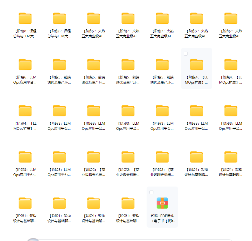 ├──【阶段8:课程总结与LLM大语言模型进阶】第20周上 课程回顾与总结